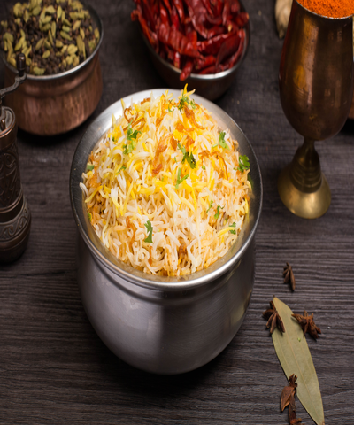 Prepared with basmati rice & cardamon. Dish which blends perfect with any food item. ||| محضرة مع الأرز البسمتي والهيل. طبق يمتزج بشكل مثالي مع أي عنصر غذائي