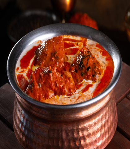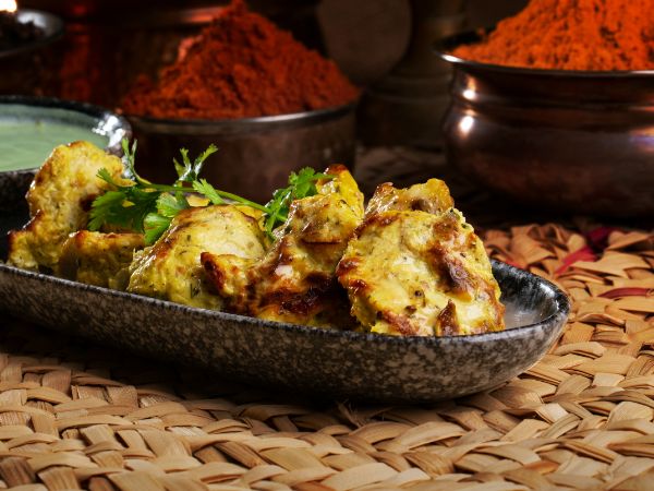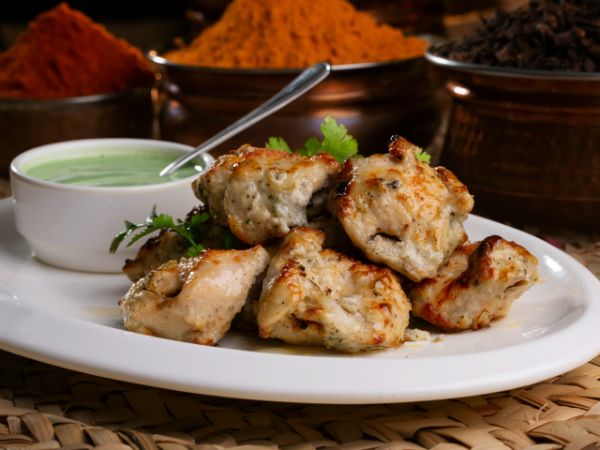 Made with Pieces of Boneless Chicken, Marinated in juicy mixture of Curd, Cream, Cashew nuts and Spices and then Slow Cooked In Tandoor ||| مصنوعة من قطع الدجاج المسحب، متبلة في خليط من اللبن الرائب والكريمة والكاجو والتوابل ثم تُطهى ببطء في التندور |||