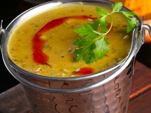 Chunks Of Fried boneless mutton pieces marinated overnight with spices, Served With Khatti Dal. ||| قطع لحم ضأن مقلية مسحب متبلة طوال الليل بالبهارات، تقدم مع خاتي دال